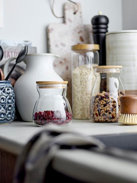 I køkkenet skal der være plads til rigtig mange ting – alt lige fra service til madvarer. Derfor er køkkenet også et rum, som hurtigt kan fremstå rodet både på køkkenbordet og i skufferne. Skab orden og ro for øjet med smuk køkkenopbevaring fra Bloomingville. Du kan eksempelvis bruge krukker til at opbevare nødder, havregryn og snacks for et nemmere overblik, når du åbner skabet eller skuffen.