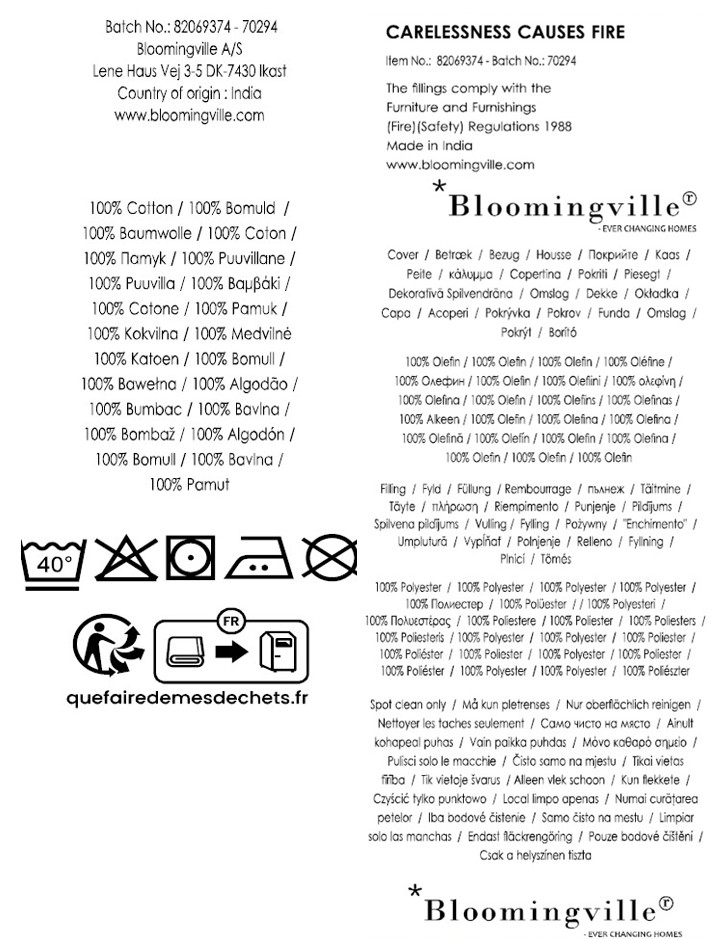 | Composition | 100% Cotton, Filling: 100% PES |