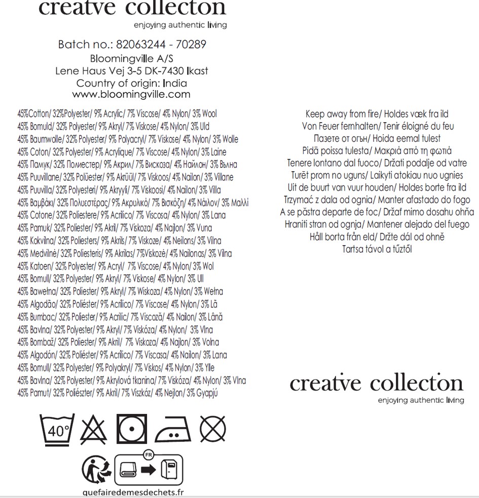 | Composition | 45% CO, 32% PES, 9% PAN, 7% Viscose, 4% PA, 3% WO |